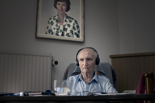 "L'été dernier, j'ai intégré bénévolement l'équipe d'animation d'une maison de retraite. J'avais souhaité vivre cette expérience pour réaliser une série de portraits et prendre le temps de rencontrer, d'échanger avec des personnes âgées, de partager par le biais de la musique. Pour chacune des photos, j'ai demandé aux personnes ce qu'elles avaient envie d'écouter. La musique souhaitée était souvent un air lointain, inscrit dans leurs souvenirs. C'est ainsi que je vis la musique aller au plus profond de la mémoire et de l'être. Le casque sur les oreilles, elles embarquaient le temps d'un air, pour un grand voyage chargé d'émotions. Et c'est ce voyage que j'ai cherché à immortaliser.", confie Laurence von der Weid.