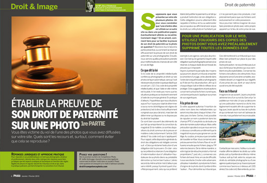 Le thème : ÉTABLIR LA PREUVE DE SON DROIT DE PATERNITÉ SUR UNE PHOTO 1re PARTIE