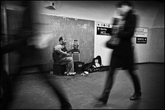 "Chacun dans son monde. Trop pressés pour s'arrêter et l'écouter... Au passage, retrouvez-le sur http://www.myspace.com/lahceneguitariste"