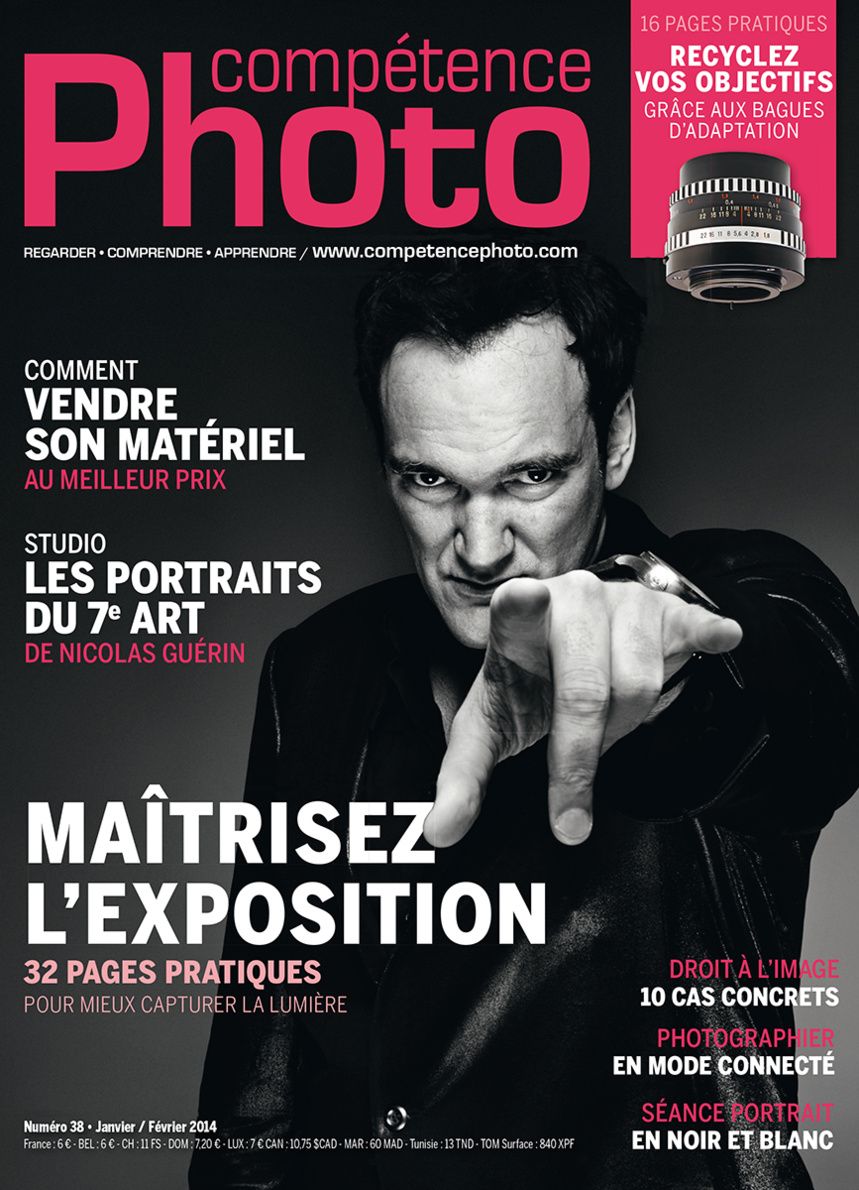 Le Numéro 38 débute l'année 2014 avec un grand dossier prise de vue entièrement consacré à la maîtrise de l'exposition en photographie. Un sujet aussi vaste que complexe traité de manière progressive, de la présentation de la capture de la lumière en numérique, des principes et modes de mesure à la maîtrise des paramètres d'exposition et du contrôle de l'exposition lors de la prise de vue. Le dossier passe également en revue toutes les conditions de prise de vue possibles, avec des exemples à l'appui. Ce Numéro 38 fait également la part belle au matériel avec deux dossiers sur l'équipement. Le premier est une grande enquête pour vous aider à vendre votre matériel au meilleur prix. Le second vous suggère de recycler vos objectifs grâce aux bagues d'adaptation et vous donne les clés pour parvenir aux meilleures combinaisons. Également à l'honneur, le photographe Nicolas Guérin, à qui l'on doit de très beaux portraits des plus grands réalisateurs du cinéma, de Quentin Tarantino à Tim Burton. En plus de l'entretien qu'il nous a accordé, le photographe nous a ouvert les portes de son studio pour une séance expliquée complète, de la prise de vue à la retouche. Et pour réussir à votre tour vos séances photo en mode connecté, notre spécialiste du bricolage vous aide à concevoir une tablette surmontée d'une tente pour ordinateur portable. Idéal pour les shootings en intérieur comme qu'en extérieur.